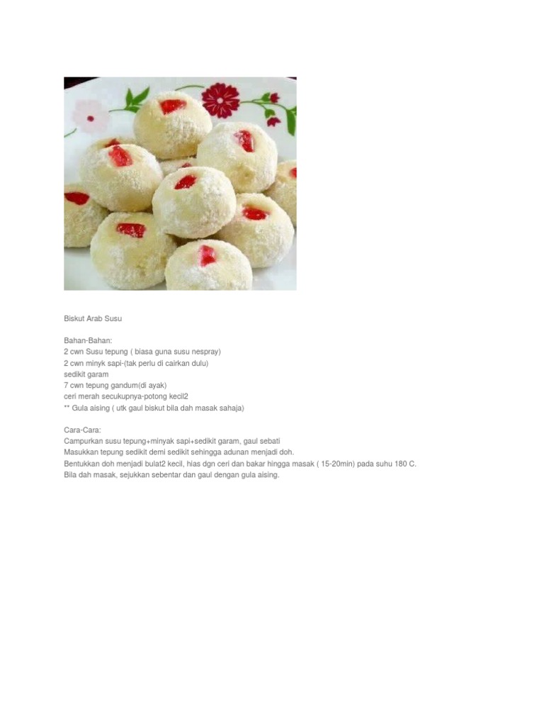 Resepi Membuat Biskut Arab Susu Biskut Raya Simple dan Sedap Resepi biskut arab susu sedap Biskut yang telah masak. Sudu gula aising susu tepung 3 sudu minyak sapi Tepung gandum 3 cwn Butter 2 sudu Almond 18 cup Kacang tanah 18 cup Hazelnut 18. Baik jom lihat bahan-bahan serta cara nak menghasilkan biskut atau kuih raya Biskut Arab Susu ini Resepi biskut arab susu Sila lihat pada senarai bahan yang dipe.